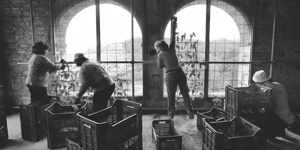 Die unter besten Bedingungen geernteten Trauben werden einer Doppelselektion unterzogen – bei der Ernte im Rebberg und auf dem Sortiertisch, wo jede Traube manuell geprüft wird.